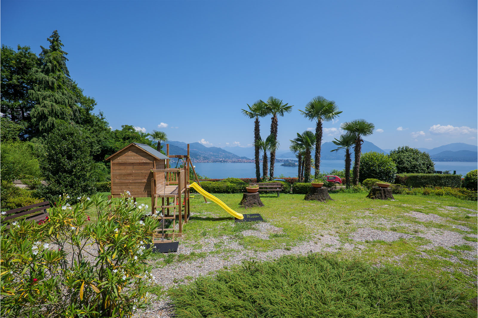 Wir bieten attraktive Zwei- und Dreizimmerwohnungen in einer charmanten Jugendstilvilla aus dem Jahre 1908 an. Die Villa liegt in sonniger und privilegierten Panoramalage von Baveno. Alle Wohnungen wurden im Jahr 2017 dem Stil der Villa entsprechend renoviert. Hervorzuheben sind die Außenbereiche mit überdachter Terrasse und Garten oder Balkon mit traumhafter Sicht auf den Lago Maggiore. Sowohl vom Innen- als auch vom jeweiligen privaten Außenbereich aus genießen Sie eine unverbaubare wunderschöne Sicht auf den See, die Borromäischen Inseln und die umliegenden Berge. Der ca. 1.000 m² große Gemeinschaftsgarten mit Pool, Liegewiese, Gemeinschaftsterrasse und Kinderspielplatz runden das parkähnlich angelegte Anwesen ab. Außerdem stehen den Bewohnern zwei große Parkplätze innerhalb des abgeschlossenen Grundstücks zu Verfügung. Auf Wunsch können wir eine Ferienvermietung mit komplettem Service empfehlen.