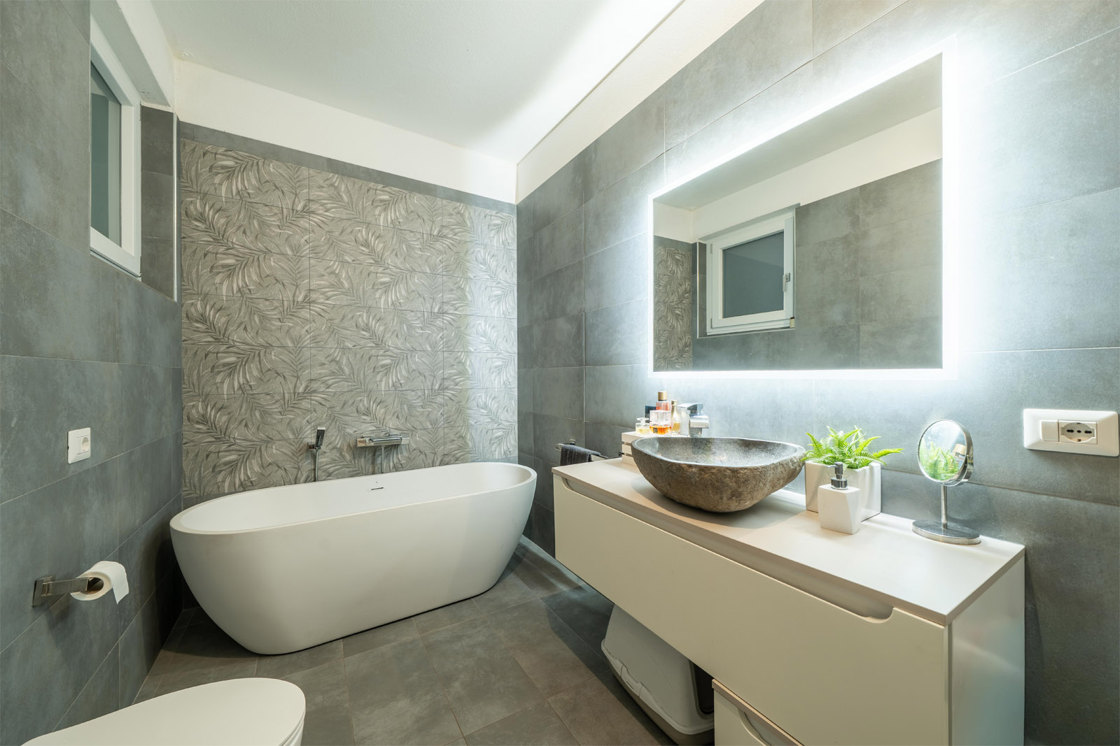 – modernes Bad mit freistehender Badewanne