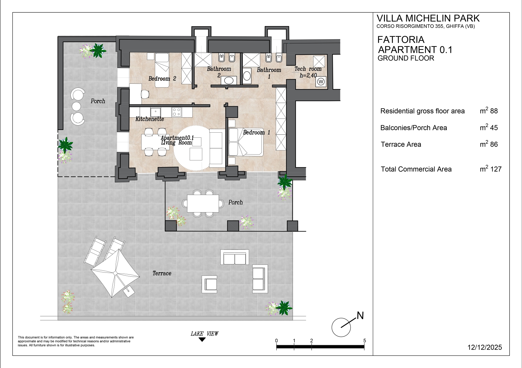 Dreizimmer-Eckwohnung „Cavallino“ 0.1 im Erdgeschoss mit ca. 70m² Wohnfläche, 45 m² Portico und 86 m² Terrasse aufgeteilt in: