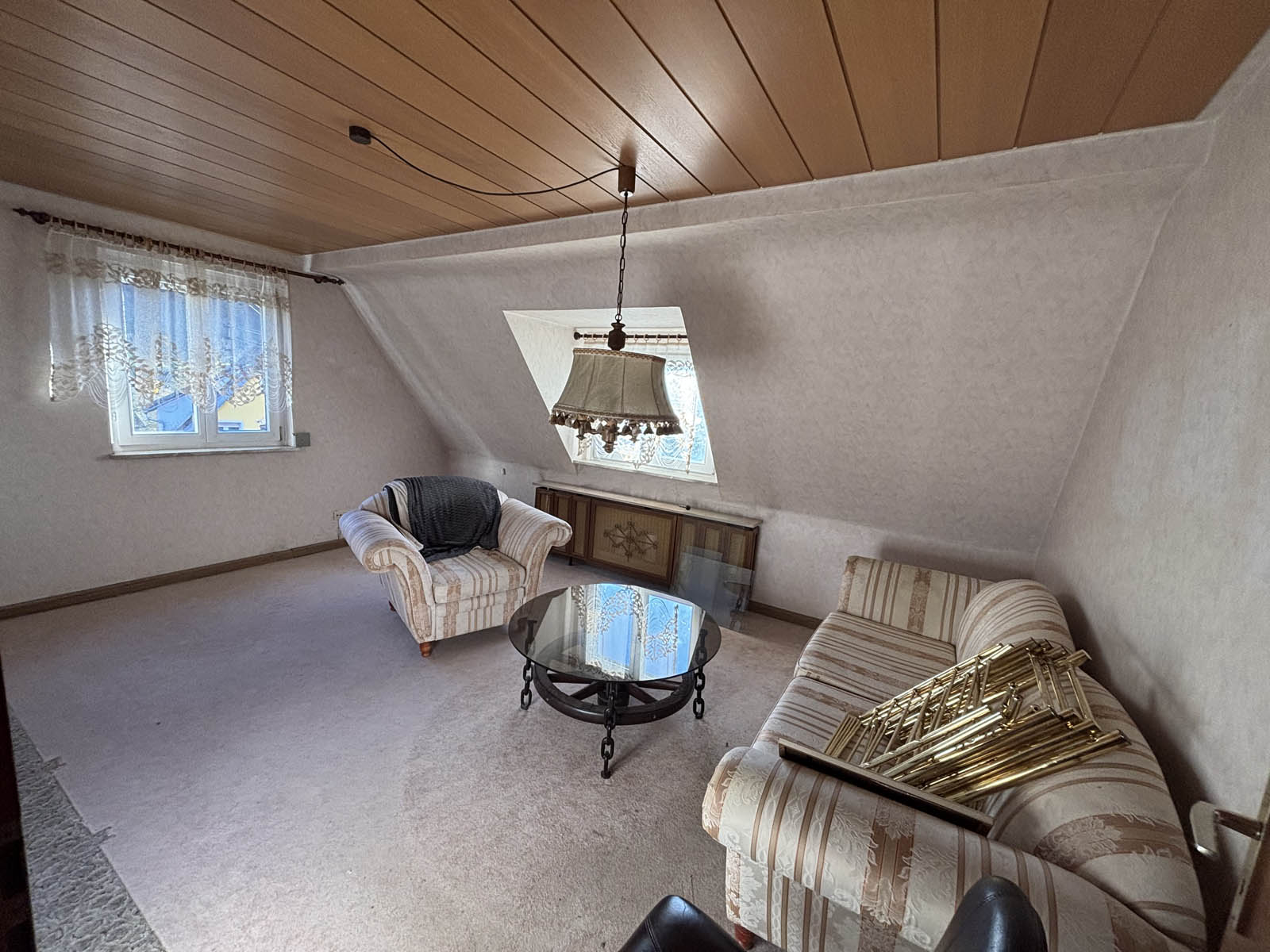 In Stadtrandlage von Schramberg steht diese Dreizimmer-Dachgeschosswohnung mit ca. 60 m² zum Verkauf. Sie teilt sich auf in Flur, Wohnzimmer, Küche mit EBK, Schlafzimmer, Kinderzimmer und Bad mit Fenster. Ihren PKW parken Sie bequem in der dazugehörenden Einzelgarage, nur wenige Meter entfernt. Ein Kellerraum im Erdgeschoss und ein Bühnenraum bietet genug Stauraum.