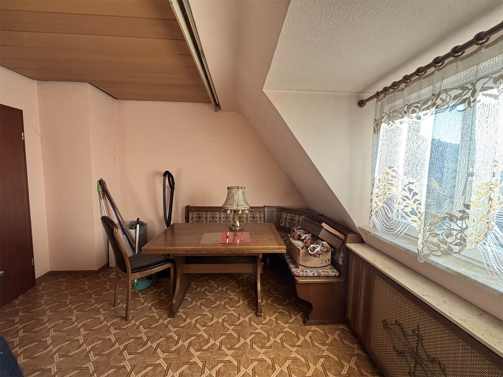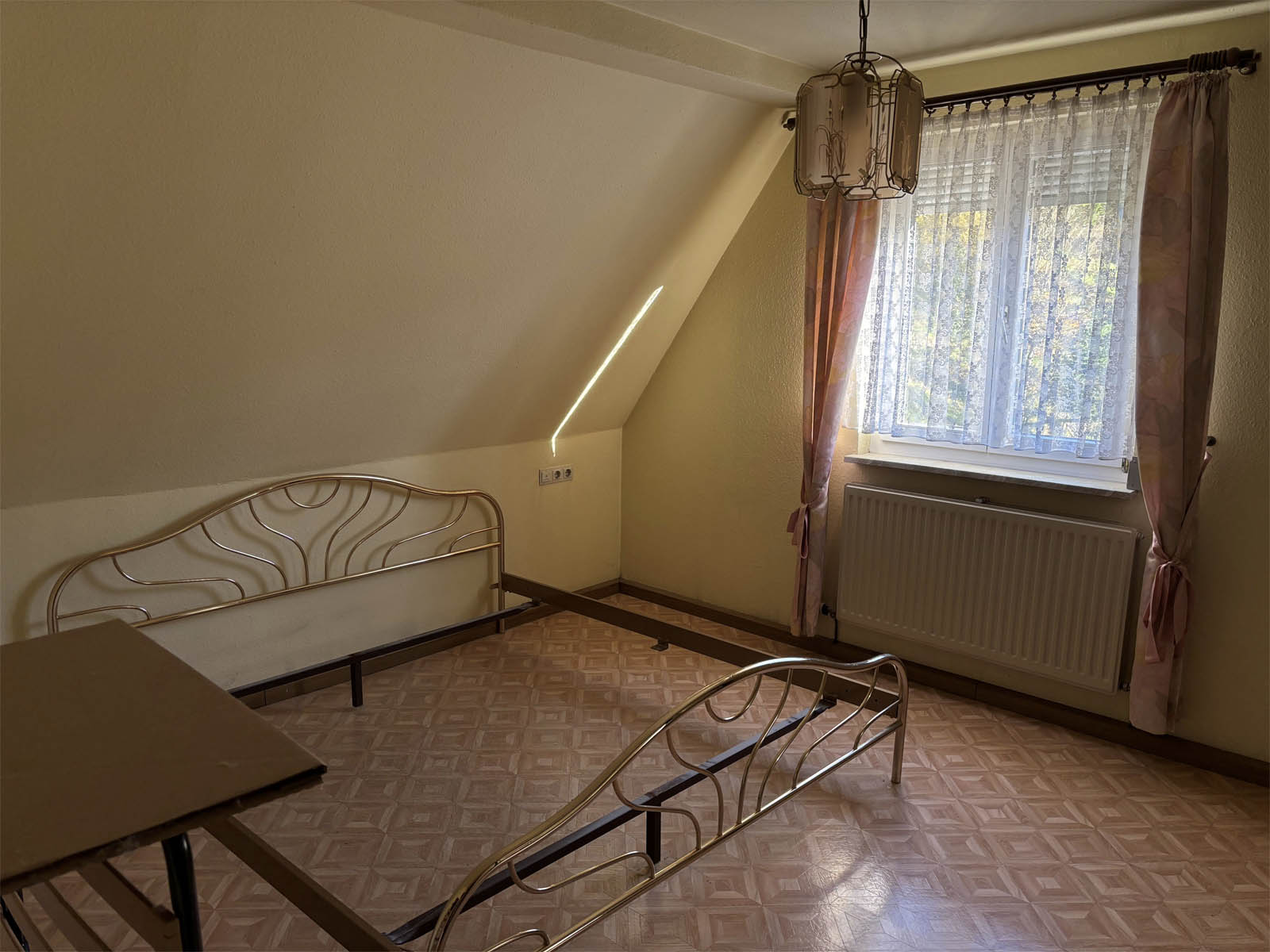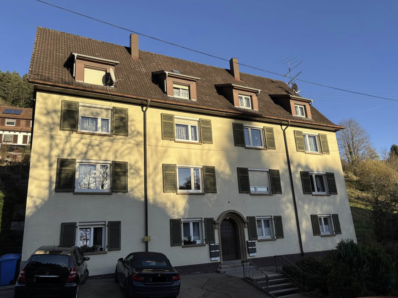 Die Wohnung befindet sich im Dachgeschoss eines gepflegten Mehrfamilienhauses mit insgesamt 8 Wohneinheiten und gemeinschaftlichem Garten. Das Gebäude wurde 1924 erbaut und 1981 saniert. Das monatliche Hausgeld beträgt circa 90€ inklusive Rücklagenzuführung. Beheizt wird über eine Gas Brennwerttherme. Die Wohnung ist teilweise renovierungsbedürftig und sofort bezugsfrei. Energieklasse H, Energiebedarf 356,50 kWh/m²a.